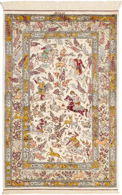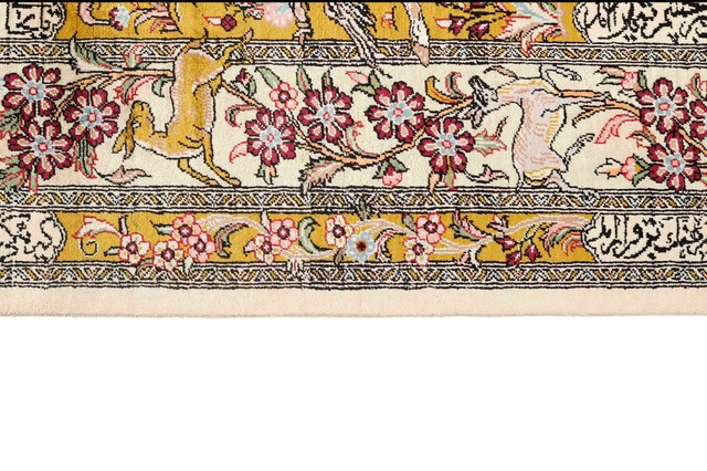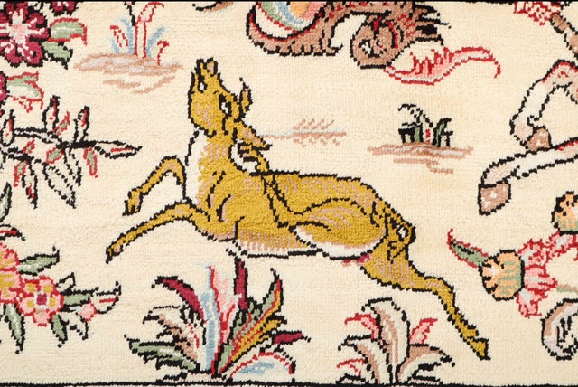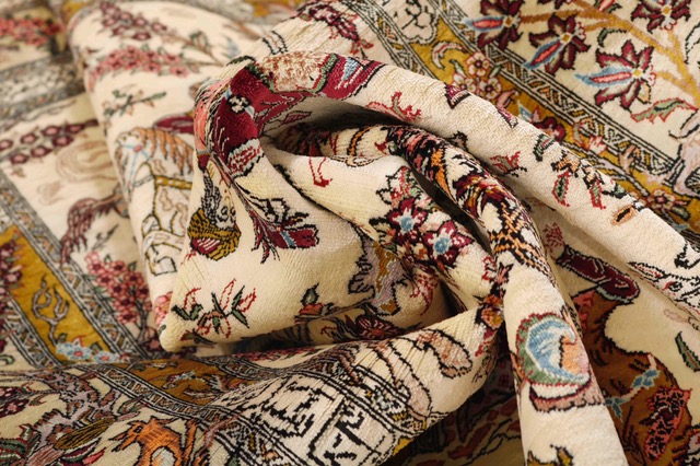 Qom ligger syd for Teheran ved vejen til Isfahan i Markazi- eller Centralprovinsen. Den har en halv million indbyggere. Byens tæppeindustri blev først udviklet efter 1930, men har fået et godt rygte. Siden der ikke er nogen tradition eller fortilfælde at trække på, tager væverne deres motiver fra forskellige kilder, hvorfra de overfører og kombinerer dem. Nogle mønstre kopierer de fuldstændigt; det er ikke usædvanligt at se kopier af Joshqan eller Sirjan tæpper lavet i Qom, men dog meget finere end originalerne og lavet med en silkeluv. Derudover lavet i Qom, men dog meget finere end originalerne og lavet med en silkeluv. Derudover laves en række variationer af medaljon og ensartede mønstre. Luven er enten silke (med skud og kæde i silke) eller uld eller blandet uld og silke med en bomuldsbund. Knytningen er normalt fin. Der bruges en lang række farver, sommetider i kombinationer, der forekommer mærkelige for folk fra vesten. En stærk lyserød og grøn er især karakteristiske for silketæpperne.