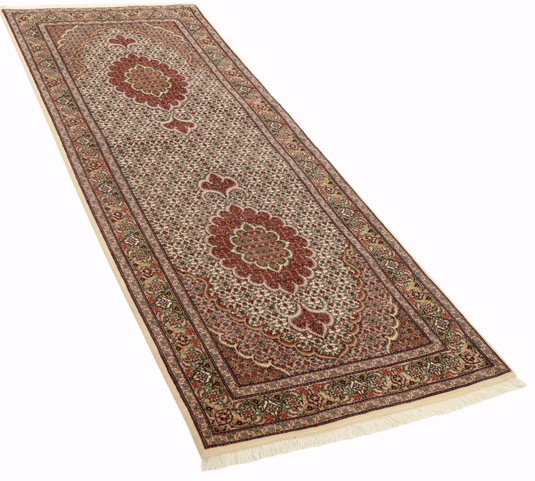 Tabriz tæppe i størrelsen 221 x 82 cm. Produceret i Iran med en knudetæthed på 500.000 pr. m2.